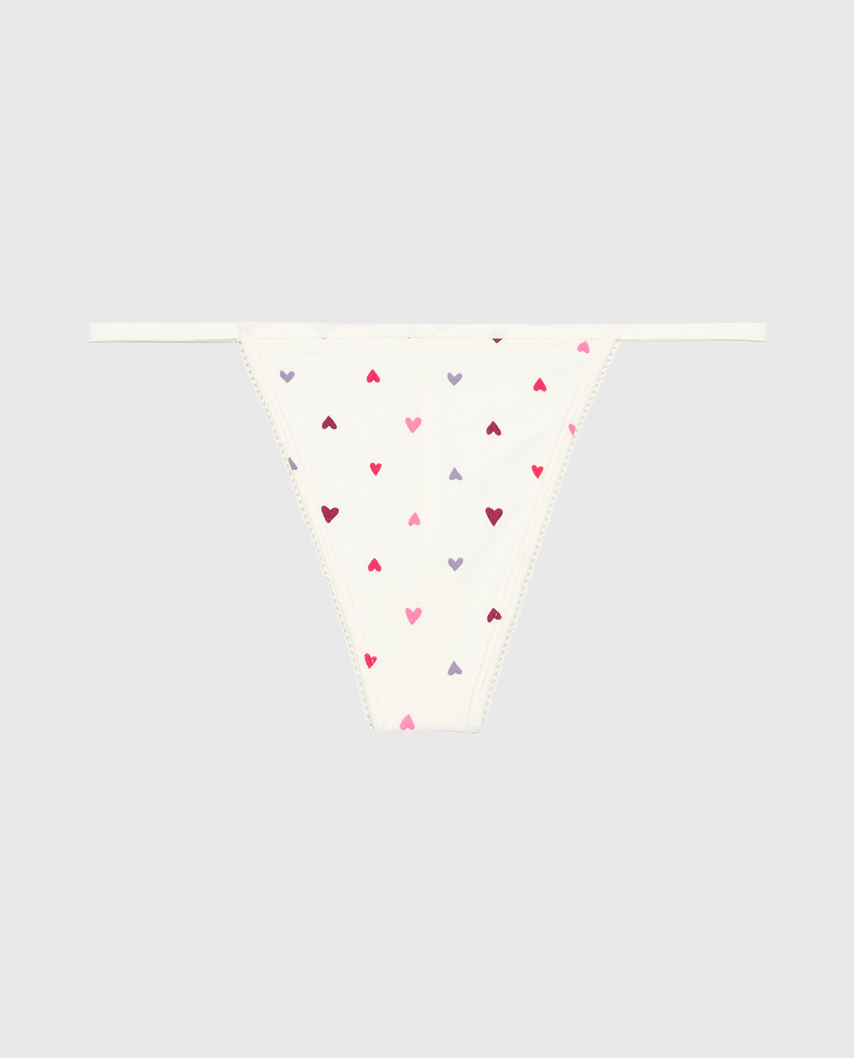 The G-String Cotton Panty with Picot Trim in Tossed Heart brings playful romance to your collection. This essential piece features a sleek G-string silhouette with delicate picot trim accents, all in a charming Tossed Heart print that adds whimsy and comfort to your everyday essentials.