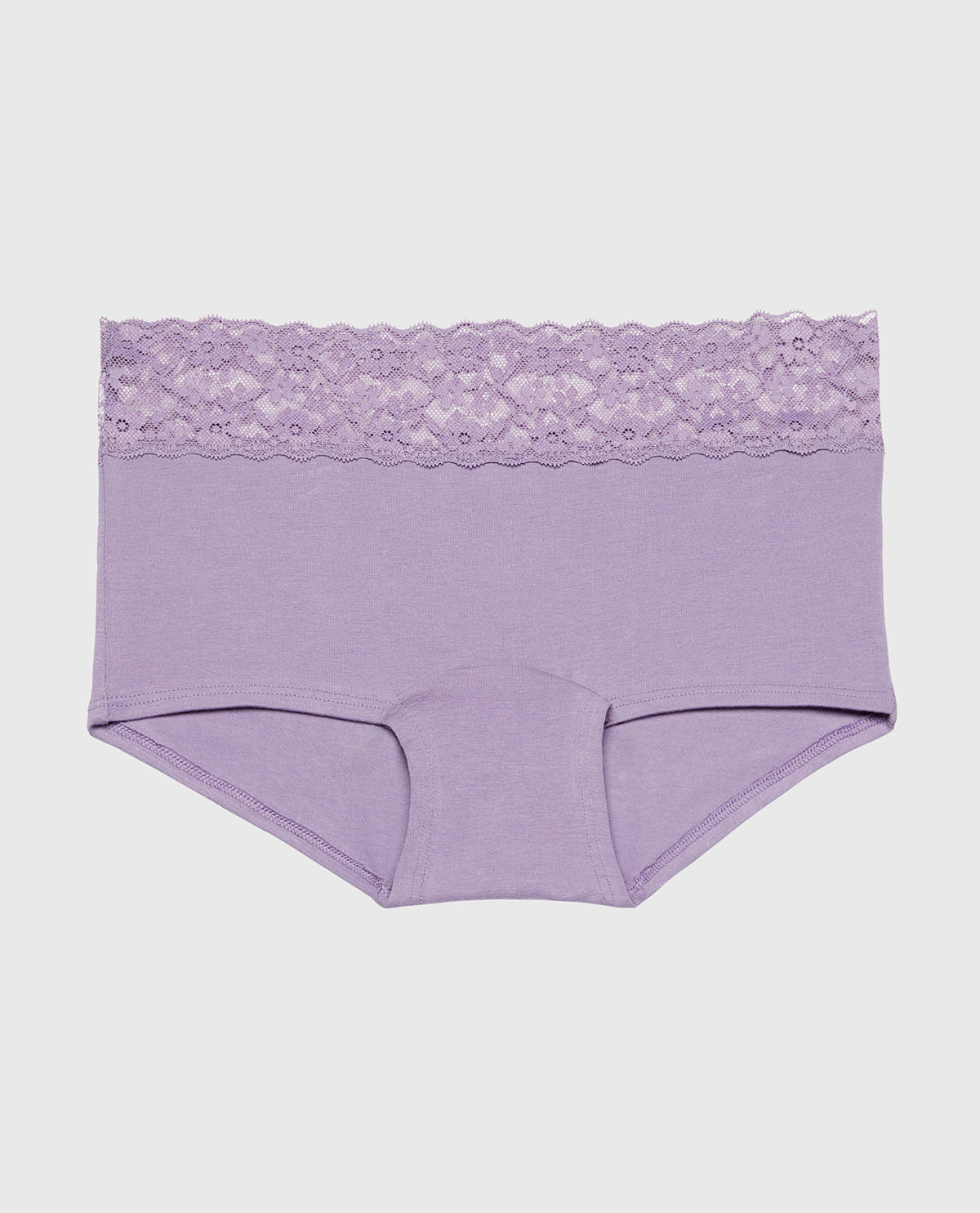 Boyshort Cotton Panty With Lace Trim in Purple Haze