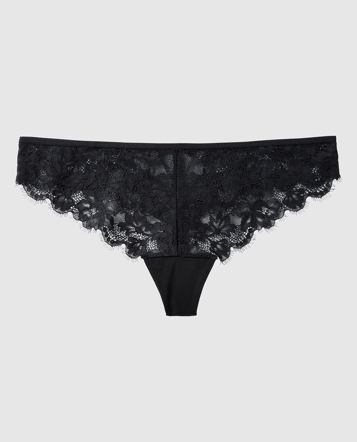 This thong has an allover sheer lace body, a low-rise fit and minimal bum coverage. Crafted with our 30% recycled nylon. Imported nylon, elastane.